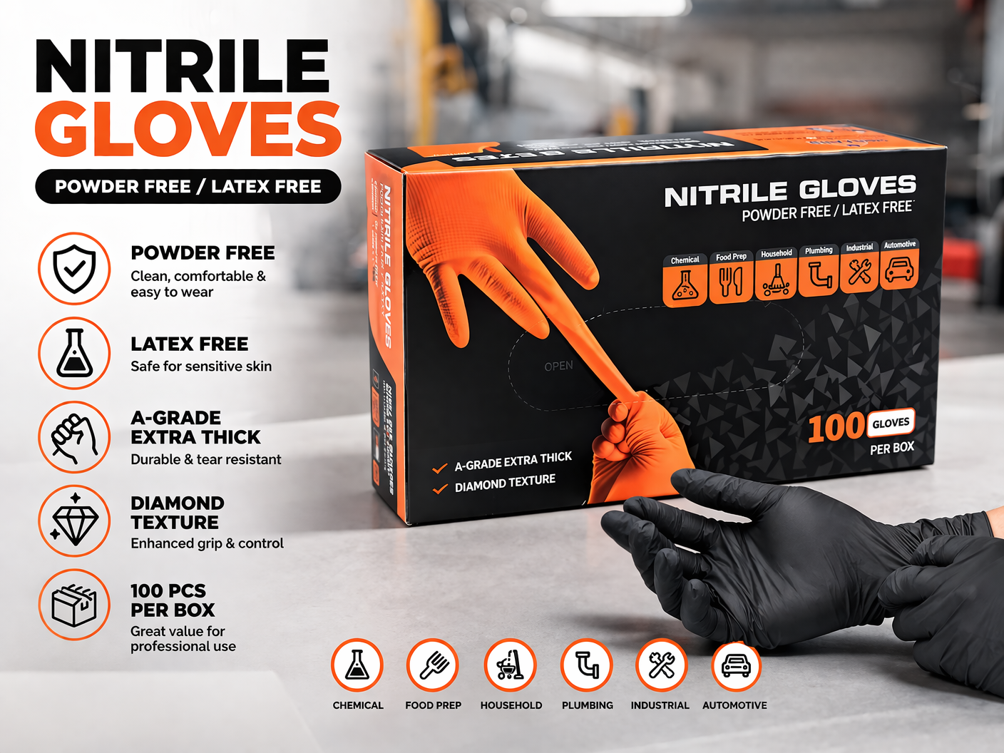 -100 PCS Nitrile Gloves Black.