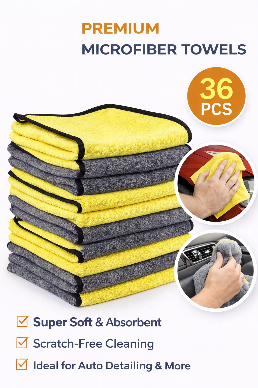 -36 Pack Microfiber Towels 12″ x 16″.