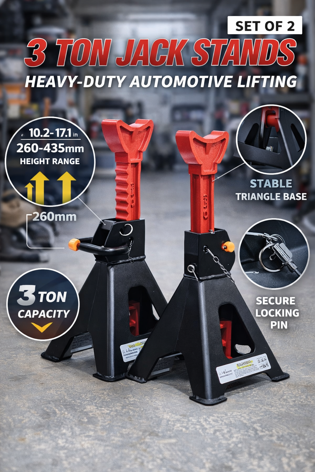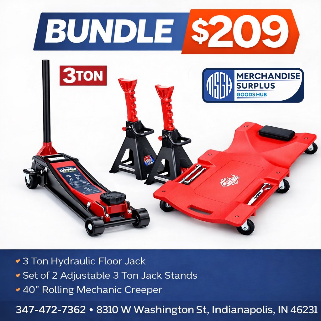Bundle Deal: 3 Ton Floor Jack + Jack Stands (Pair) + 40″ Creeper – $209